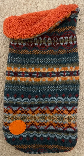 1 Orange, Turquoise and Burgundy Fairisle (Burgundy Borg Lining)